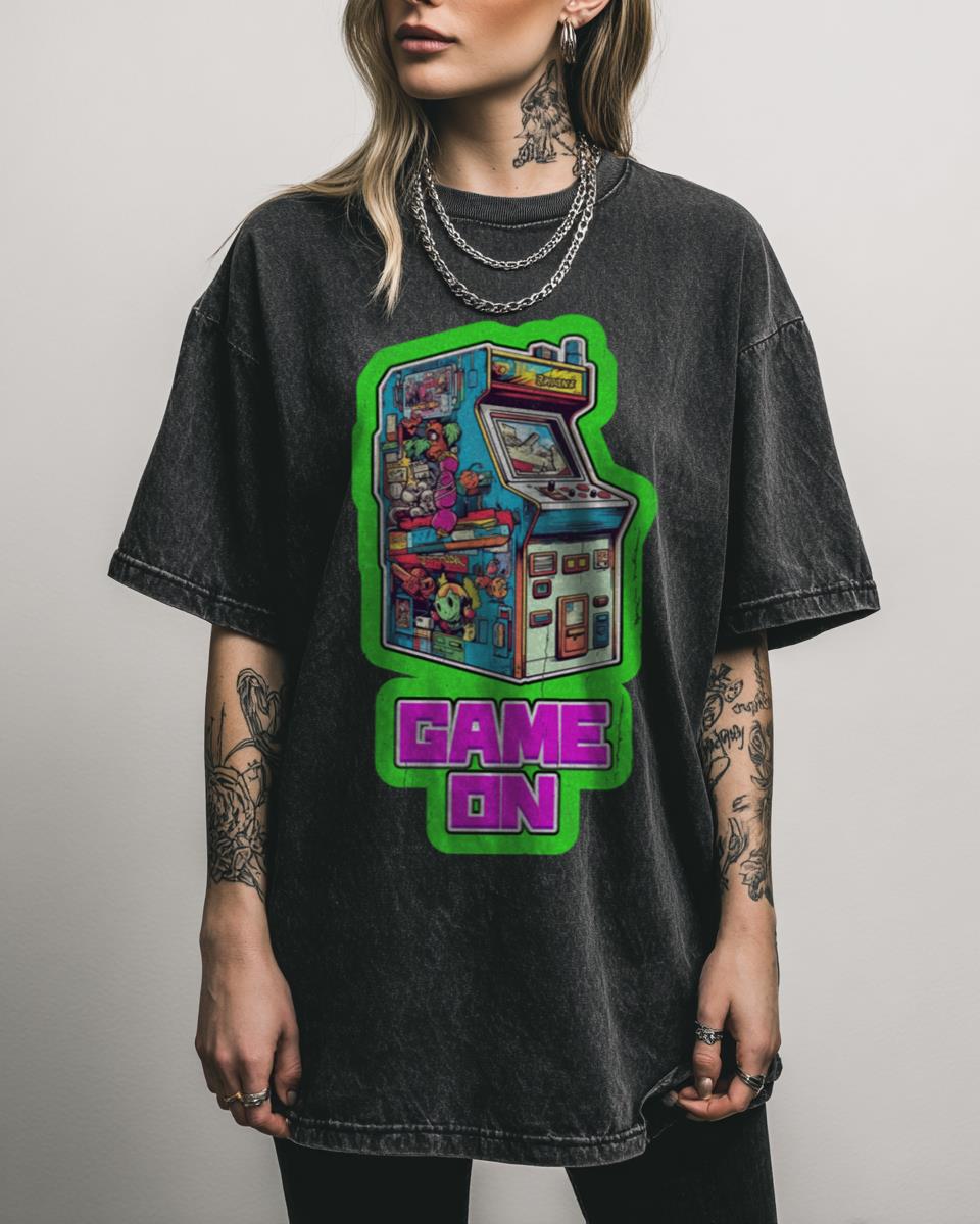 Ready to hit start on a wave of retro gaming nostalgia? Level up your style with this vibrant ‘Game On’ design! Featuring a colorful, 80s-inspired arcade aesthetic with classic console elements, this tee is a perfect tribute to vintage video games and Japanese gaming culture. It’s a must-have for any retro gamer or anime fan…