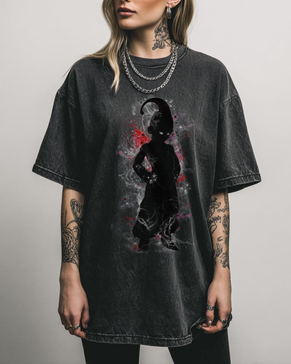 Embrace the darker side of Dragon Ball Z with this unique artistic take! This striking “Majin Buu Darkness” design offers an abstract and intense portrayal of the iconic Dragon Ball Z villain. With elements of darkness and a negative aesthetic, it captures the raw power of Buu in a way that will appeal to fans…