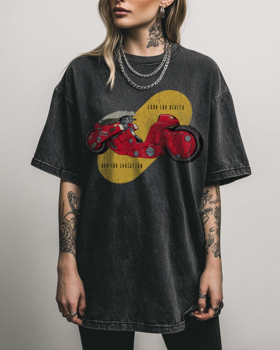 Remember the iconic red bike from Neo-Tokyo’s dystopian future? Rev up your style with this “Kaneda’s Bike is good for health” T-shirt, a tribute to the legendary Akira. This design captures the rebellious spirit and futuristic aesthetic of the 80s anime masterpiece, featuring Kaneda’s iconic motorbike. Perfect for fans of classic sci-fi, cyberpunk, and groundbreaking…