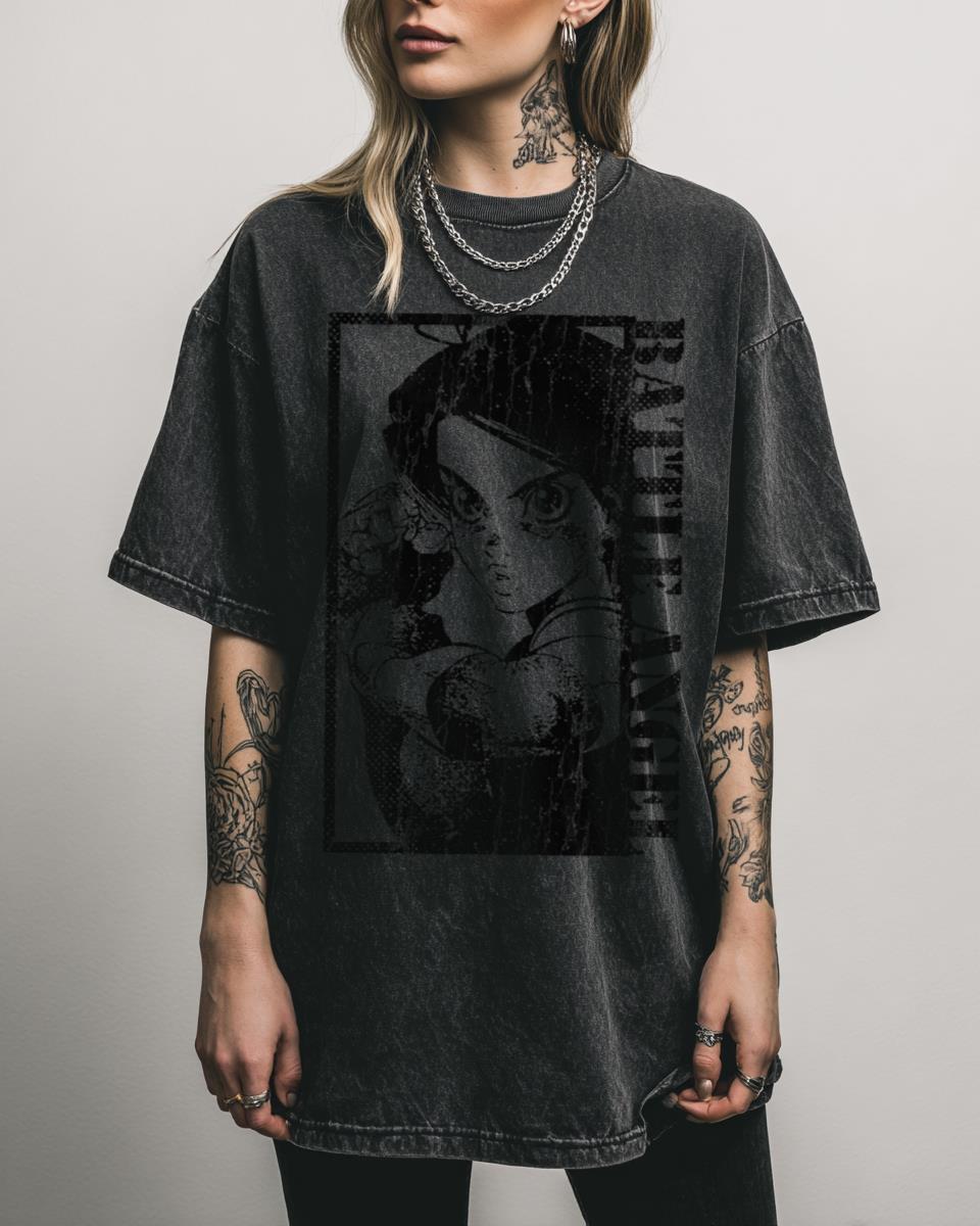 Embrace the Future with This Alita Battle Angel Manga Angel T-Shirt? Channel the strength of the ultimate warrior with this striking Alita Battle Angel Manga Angel Cyberpunk T-Shirt. Featuring a dynamic printed graphic inspired by Gally (Alita) with yellow accents, this fan-created design is a must-have for sci-fi and manga enthusiasts. The unique black acidwash…