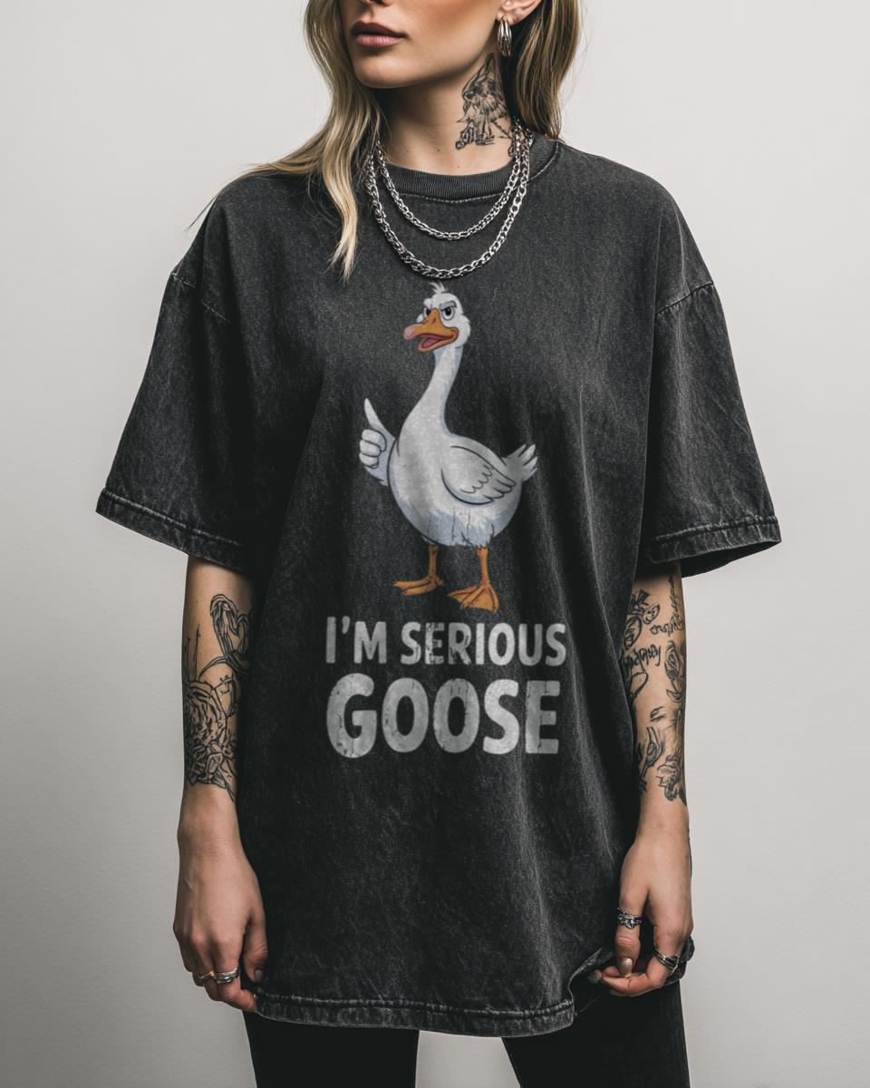 Looking for a truly unique and hilarious animal meme? Meet the ‘I’m Serious Goose,’ a determined white goose sporting a tie, ready to bring absurd humor to your wardrobe. This minimalist yet impactful design is perfect for those who appreciate quirky, ironic animal graphics. Why You’ll Love This Witty Goose Tee: Iconic ‘I’m Serious Goose’…