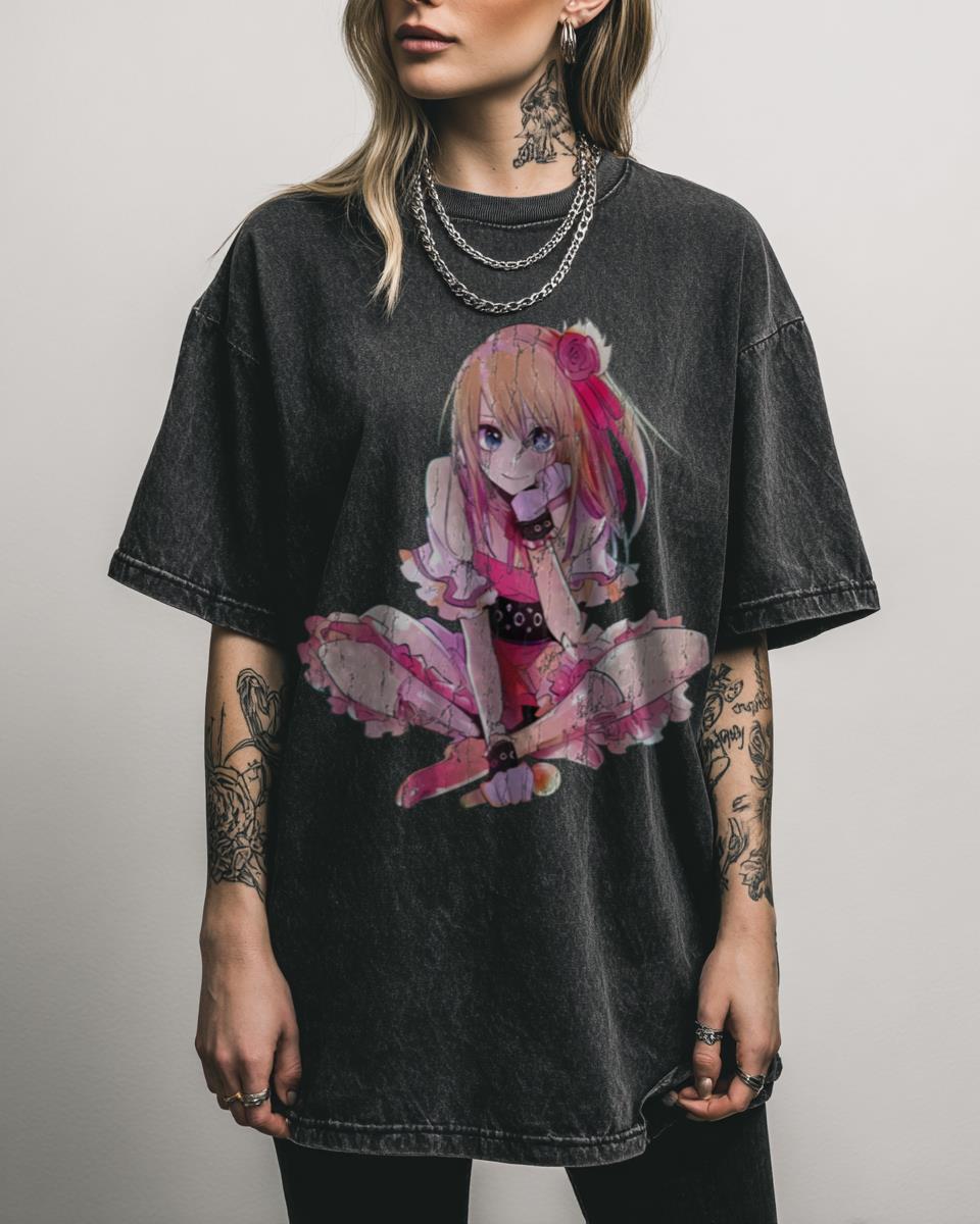 Dive into the captivating world of Oshi no Ko with this stylish tee! This T-shirt features a vibrant design of Ai Hoshino, the unforgettable idol from Oshi no Ko, rendered in the series’ distinct aesthetic. It’s a perfect way to showcase your passion for the compelling story and stunning visuals of this beloved anime and…