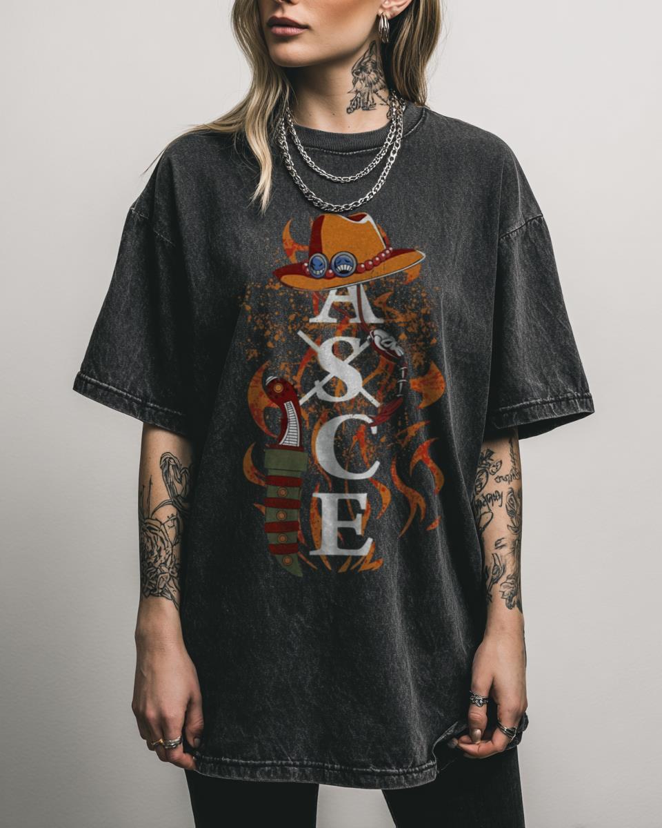 Are you a loyal fan of the fiery Portgas D. Ace from One Piece? Carry the legacy of the Whitebeard Pirates with this ‘One Piece Portgas D. Ace Design (Dark)’ t-shirt. This impactful design captures the strength and spirit of Ace, making it a powerful tribute for any fan of the epic One Piece anime…