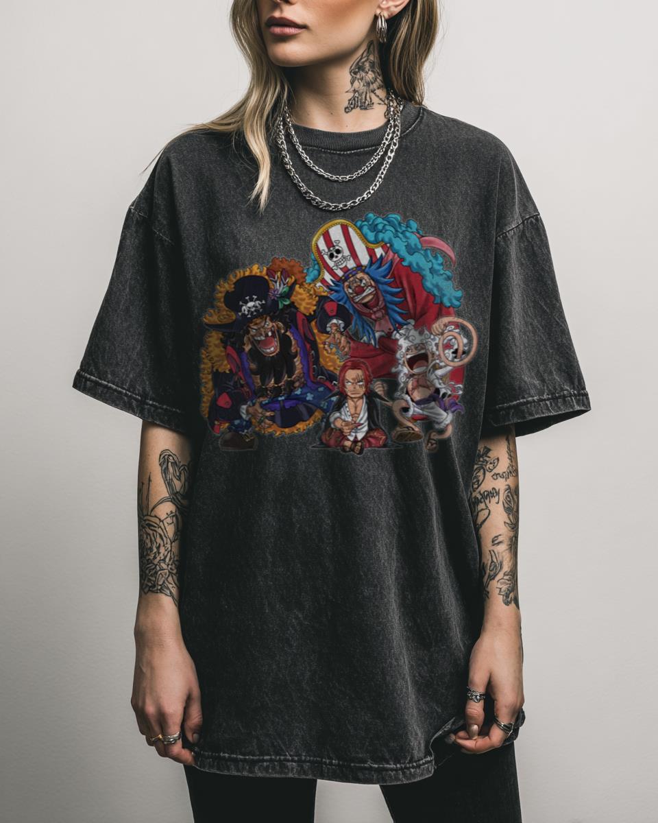 Are you a true pirate at heart, sailing the Grand Line with the legends of One Piece? Command respect with this ‘The Four Emperors’ design, celebrating the most powerful pirate captains in the world of One Piece. Featuring elements like Blackbeard, Redhair, and Joyboy/Nika, this shirt is a must-have for fans who follow the epic…