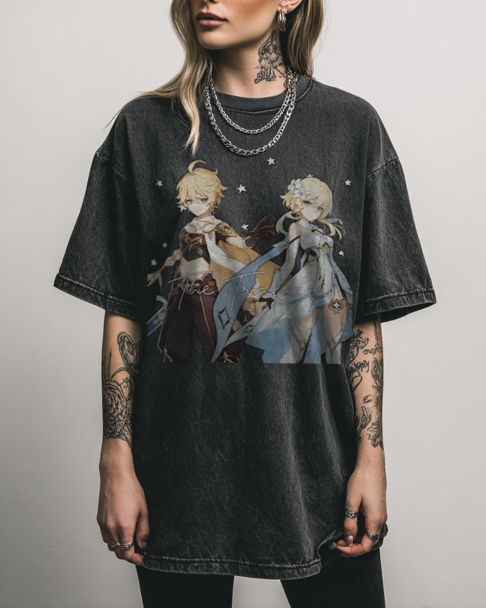 Are you journeying through the magical world of Teyvat in Genshin Impact? Embark on an adventure with this ‘Genshin Impact Aether Lumine’ t-shirt, celebrating the twin protagonists, The Traveler. This design beautifully captures the essence of Aether and Lumine, inviting fans to remember their epic quest across the realms of Teyvat. Perfect for Genshin Impact…