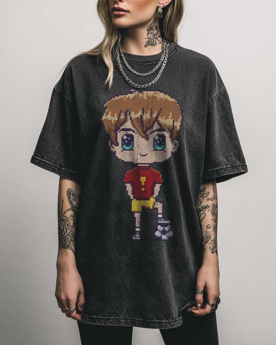 Ready to kick it old school with a nostalgic pixel art anime design? Relive the golden age of gaming with this “Anime Soccer boy” T-shirt, featuring a charming 8-bit pixel art style. This retro graphic captures the innocence and fun of classic video games and anime, making it a perfect piece for fans of 80s…