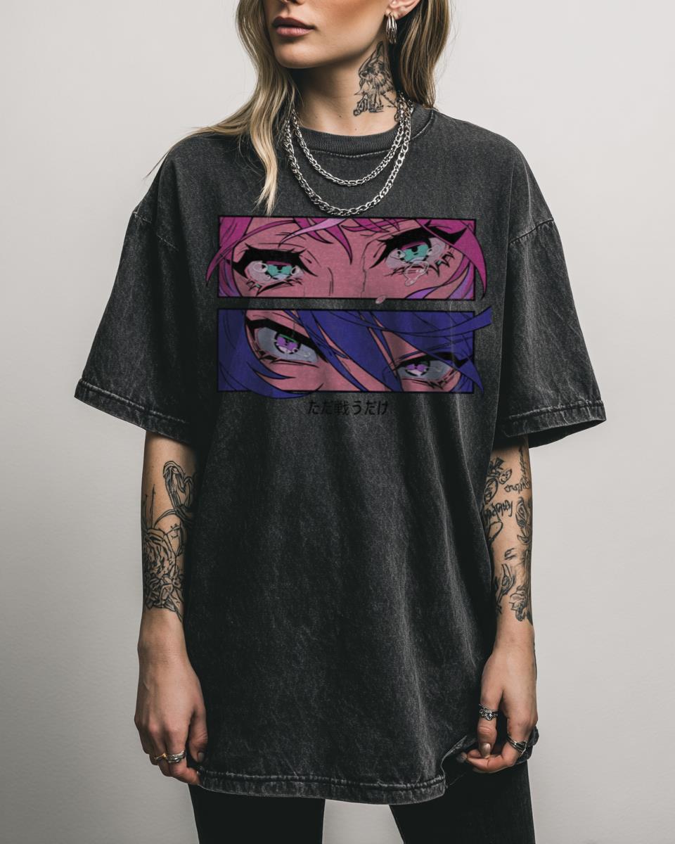 Are you drawn to the expressive power of anime eyes and emotional storytelling? Capture the intensity of anime with this “Fighting Girl Eyes” T-shirt, featuring dramatic, crying blue eyes and subtle Japanese words that convey a fighting spirit. This design delves into the emotional depth often found in anime, perfect for fans who appreciate the…