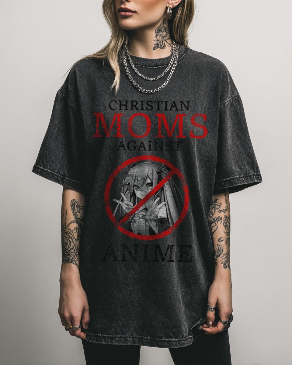 What’s the Story Behind the ‘Christian Moms Against Anime’ T-Shirt? Express your ironic sense of humor with the ‘Christian Moms Against Anime’ T-shirt. This black acidwash tee captures a popular internet meme, making it a clever and funny statement piece for anime lovers and pop culture enthusiasts alike. Key Features of This Satirical Anime Meme…
