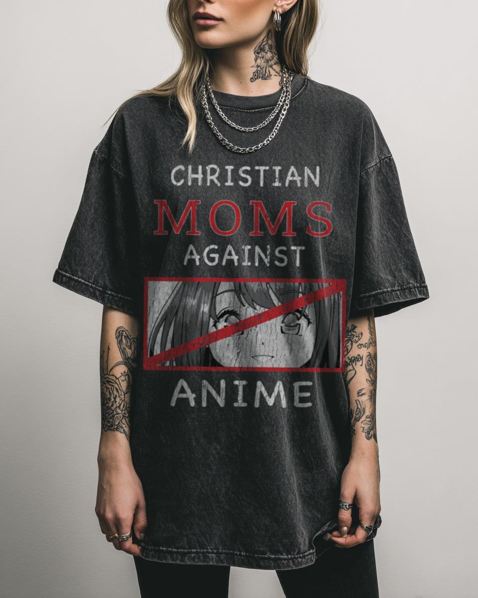 Why is the ‘Christian Moms Against Anime’ T-Shirt a Hilarious Fan Statement? Dive into internet culture with the ‘Christian Moms Against Anime’ T-shirt. This black acidwash tee is a funny, satirical take on a popular meme, perfect for anime fans who appreciate a good laugh and ironic humor. Key Features of This Funny Anime Meme…