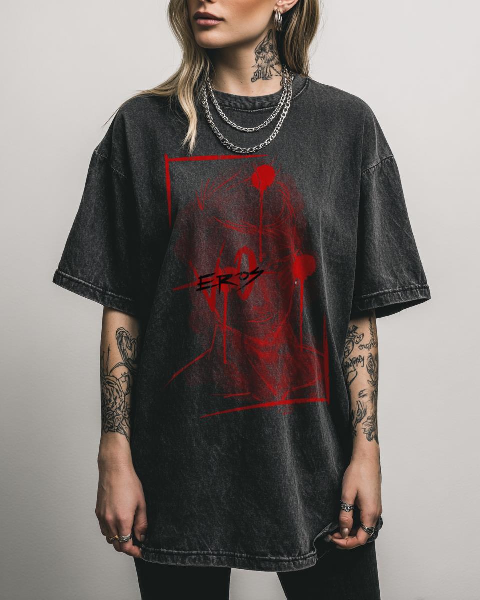Drawn to designs that blend dark aesthetics with raw emotion? Unleash a captivatingly dark aesthetic with this “vo.ME” graphic tee, featuring elements of “Blood” and “Eros” in a unique artistic style by Voeros. This design explores themes of intense emotion and raw beauty, perfect for those who appreciate experimental art, gothic vibes, and a bold,…