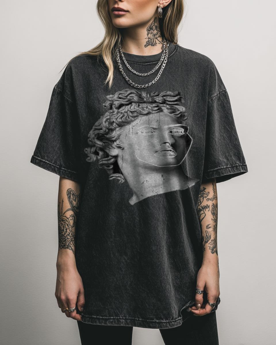 Do you appreciate classical art with a modern, digital twist? Merge ancient beauty with future nostalgia with this ‘David Greek Sculpture Vaporwave’ graphic tee! This design features Michelangelo’s iconic David statue re-imagined in a vibrant 90s aesthetic, complete with neon colors, pastel hues, and glitch art effects. Perfect for fans of vaporwave, retro anime, and…
