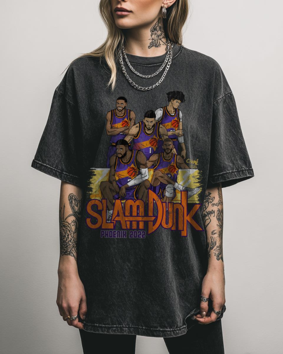 Ready to show your love for Phoenix basketball and epic slam dunks? Hit the court in style with this dynamic “Phoenix Slam Dunk” T-Shirt. Celebrating the vibrant energy of Arizona’s basketball scene, this design captures the thrill of a powerful dunk. It’s the perfect apparel for fans of the Valley, Ayton, Booker, and Paul, bringing…