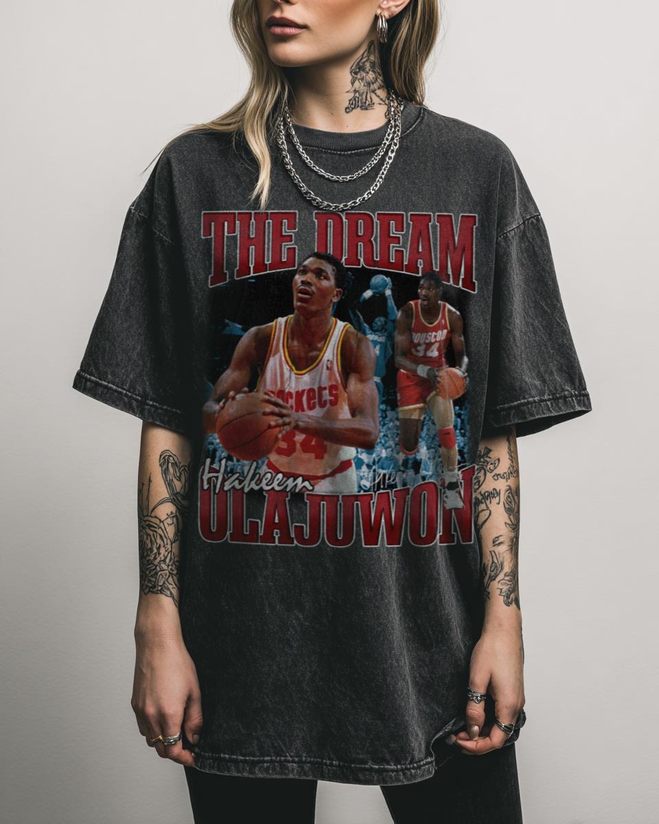 Are you a true fan of 90s basketball and the legendary Hakeem ‘The Dream’ Olajuwon? This ‘Vintage Hakeem Olajuwon’ design captures the essence of the 90s bootleg rap tee style, celebrating the basketball legend’s iconic signature and ‘The Dream’ nickname. It’s a must-have for fans of retro NBA and hip-hop culture. Why You’ll Love This…