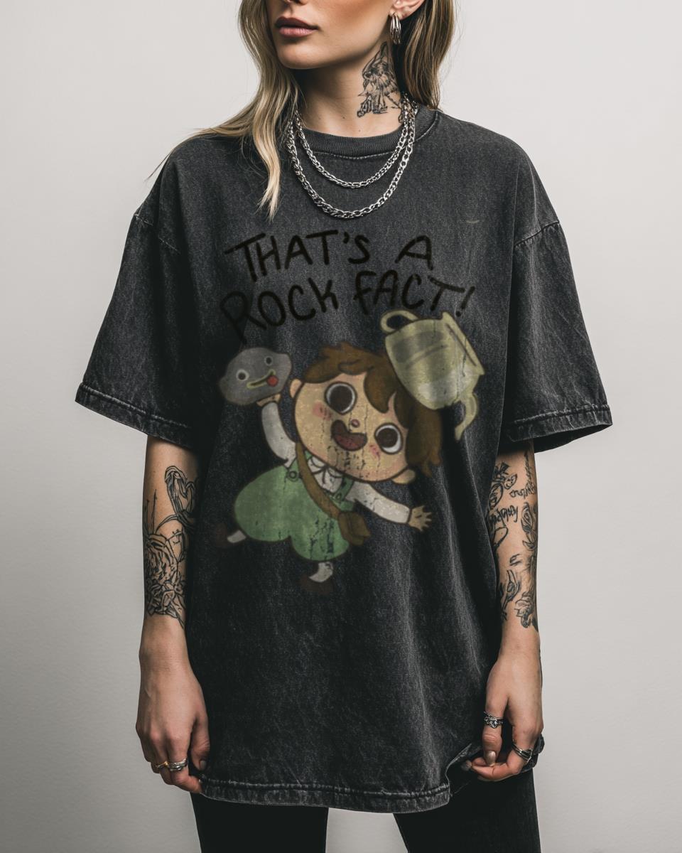 Are you a fan of the whimsical world of Over the Garden Wall? Celebrate the charming and insightful Greg with this ‘Greg Rock Fact’ T-shirt, inspired by the beloved Cartoon Network series. This design perfectly captures Greg’s endearing innocence and his iconic rock facts, making it a delightful piece for any fan of Wirt and…