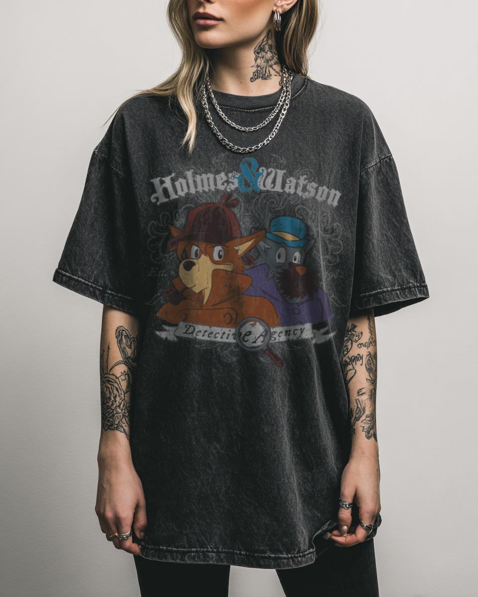 Are you a fan of classic 80s cartoons and clever mysteries? Join the canine detective duo with our ‘H & W’ T-shirt, inspired by the beloved 80s animated series featuring Sherlock Holmes and Doctor Watson as dogs! This charming design celebrates the iconic characters in their unique cartoon form, perfect for fans of nostalgic animation…