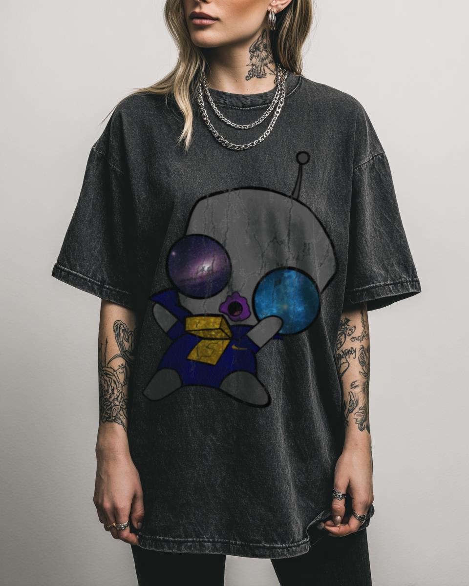 Ready to embrace the chaotic cuteness of your favorite robot companion? Show your love for the iconic little robot with this “G.I.R” design from Invader Zim. This graphic features GIR in a cosmic galaxy setting, capturing his unique charm and unpredictable personality. It’s a perfect nostalgic piece for fans of Nickelodeon cartoons, Invader Zim, and…