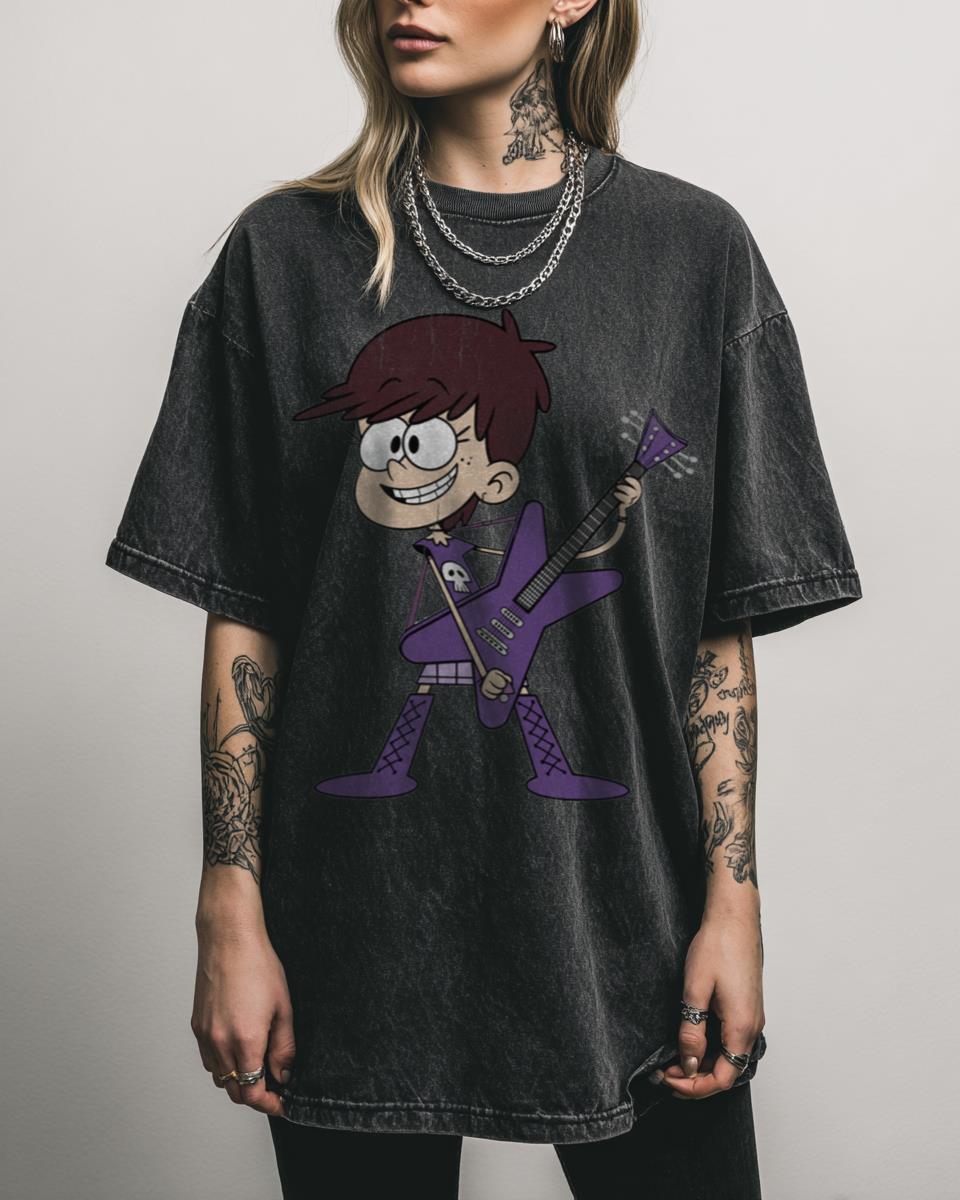 Rock out with your favorite Loud House character, Luna Loud! This vibrant graphic tee features Luna Loud with her signature violet guitar, celebrating her passion for music from the beloved Nickelodeon cartoon “The Loud House.” Perfect for music lovers and fans of the energetic rocker sister. Why You’ll Love This Luna Loud The Loud House…