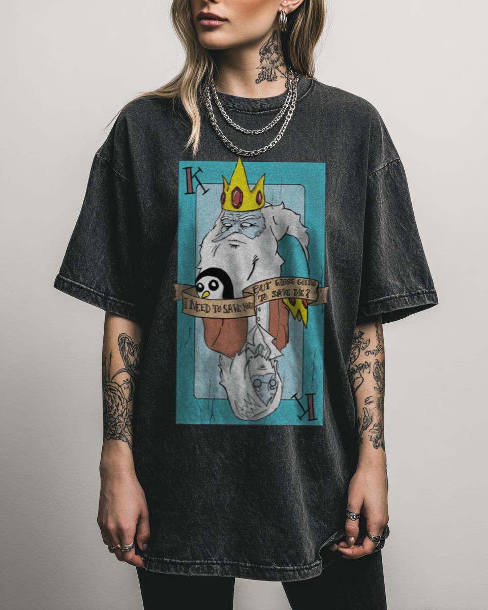 Are you a loyal subject of the Ice Kingdom, or just a fan of quirky cartoons? Rule your wardrobe with this “King of Ice” T-shirt, celebrating the beloved and complex character from Adventure Time! Featuring the iconic Ice King, this design is a fantastic tribute to Simon Petrikov and his icy realm, perfect for fans…