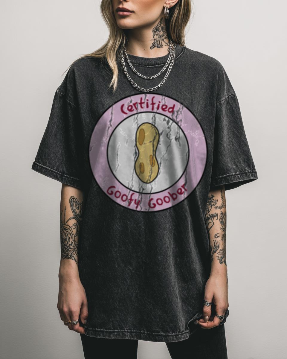 Are you a certified Goofy Goober ready for some ice cream? Embrace your inner child with this hilarious ‘certified goofy goober’ design, inspired by Spongebob Squarepants! Featuring a fun ice cream sundae, this artwork is perfect for fans of Nickelodeon, Patrick Star, and the iconic Spongebob movie moment. Printed on a stylish Black Acidwash T-shirt,…