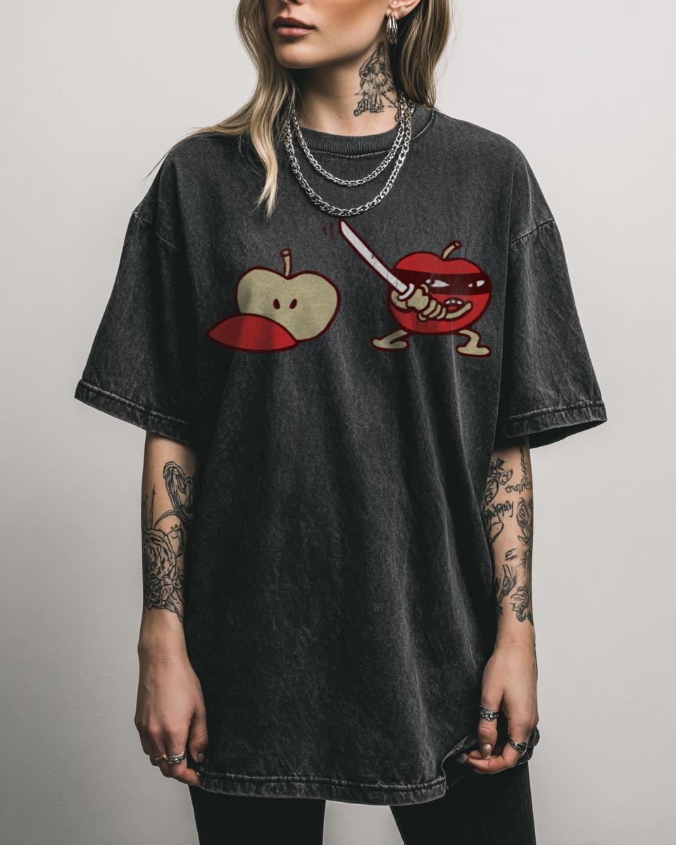 Looking for a dose of quirky humor and cartoon action? Unleash your inner fruit ninja with this hilarious ‘apple ninja apple’ T-shirt! This cartoon design features a mutant apple wielding a katana, ready for a fight in the orchard. It’s a fun, geeky, and WTF-worthy graphic that’s sure to get laughs and turn heads. Perfect…