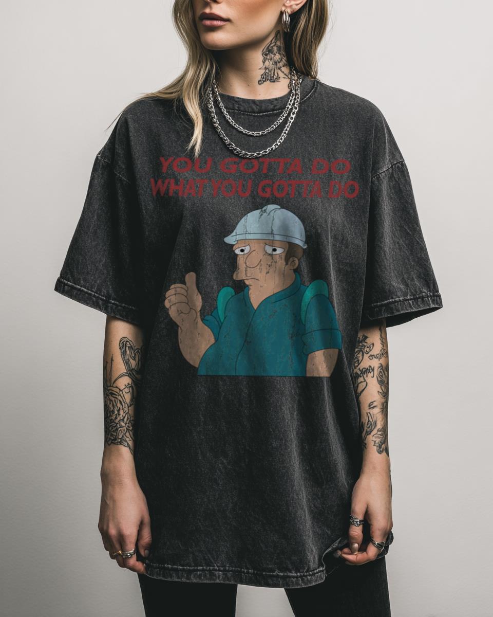 Navigating life’s challenges with a dose of cartoon wisdom and humor? Embrace the relatable philosophy of ‘You Gotta Do What You Gotta Do’ with this hilarious cartoon-inspired T-shirt! Featuring elements reminiscent of beloved shows like Futurama (Bender, Fry, Leela, Zoidberg), The Simpsons, and Bob’s Burgers, this design offers a humorous take on perseverance, perhaps with…