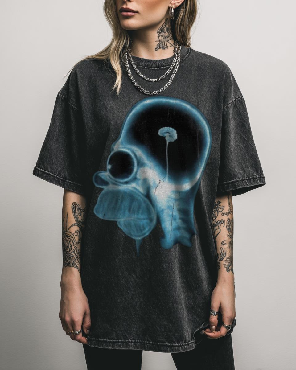 Ever wondered what’s really going on inside Homer Simpson’s head? This hilarious ‘Homer x-ray’ design offers a comical peek into the mind of everyone’s favorite TV dad, Homer Simpson, revealing his famously small brain. It’s a witty and iconic tribute to The Simpsons’ enduring humor. Why You’ll Love This: Humorous printed graphics Fashionable dropped shoulders…