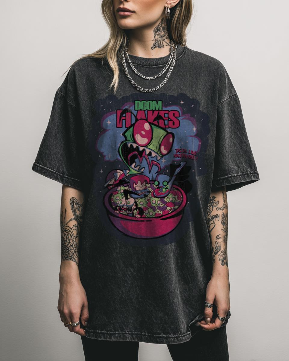 Are you a fan of chaotic humor and classic Nickelodeon cartoons like Invader Zim? Start your day with a laugh with this ‘Invader Zim Cereal’ T-shirt, featuring the beloved and chaotic robot Gir. This design reimagines the iconic cartoon characters in a hilarious breakfast cereal theme, perfect for fans of Invader Zim and Nickelodeon nostalgia….