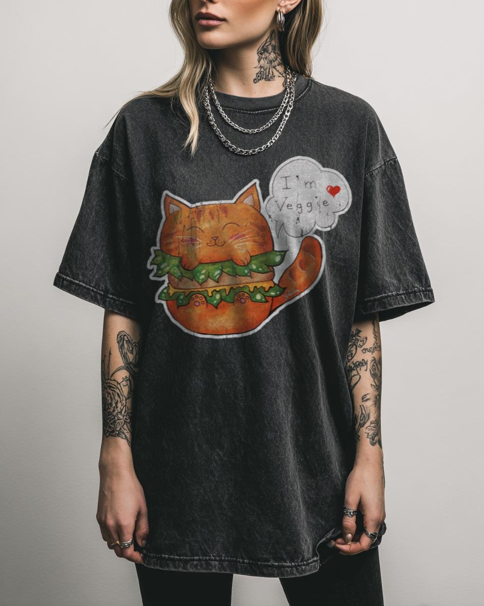 Looking for an adorable and whimsical design that combines cats and food? Feast your eyes on this charming ‘Cat Veggie Burger’ design! This cute children’s illustration, rendered in a kawaii comic style with traditional art techniques, features an irresistible feline enjoying a delicious veggie burger. It’s a delightful and whimsical piece perfect for cat lovers…