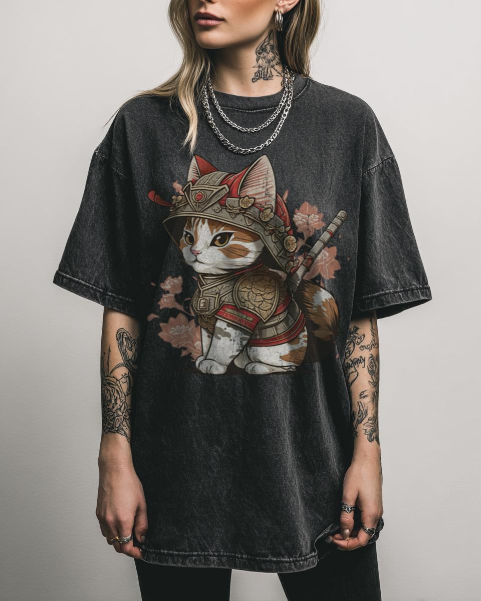 Do you admire the noble spirit of the samurai and the grace of felines? Unleash your inner warrior with this “Japanese Samurai Cat” graphic tee. This retro-inspired design features a majestic feline samurai, complete with a katana, blending traditional Japanese art with a cool anime aesthetic. Perfect for cat lovers, martial arts enthusiasts, and fans…