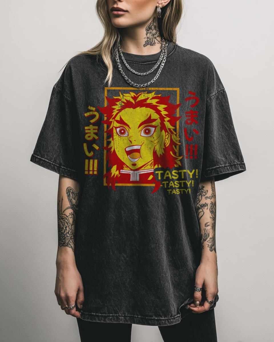 Remember Rengoku’s iconic ‘Umai!’ moment from Demon Slayer, and want to share the joy? Relive the heartwarming and hilarious ‘Umai!’ moments with our ‘Rengoku Tasty!’ design. This graphic celebrates the beloved Flame Hashira, Rengoku Kyoujurou, and his enthusiastic appreciation for food, making it a perfect, funny tribute for any Demon Slayer: Kimetsu No Yaiba fan….