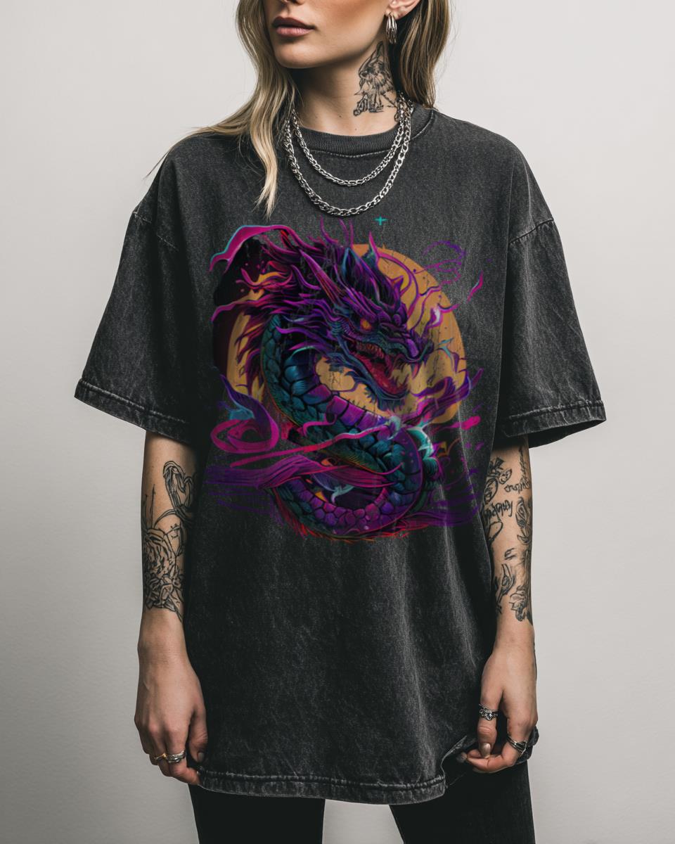 Are you ready to fuse ancient mythology with futuristic retro vibes? Unleash the power of the ‘Chinese Dragon Synthwave’ with this electrifying Black Acidwash T-Shirt. This design masterfully blends the majestic Chinese dragon with a vibrant 80s synthwave and cyberpunk aesthetic, creating a unique Japanese-inspired vaporwave art piece that’s truly captivating. Why You’ll Love This:…