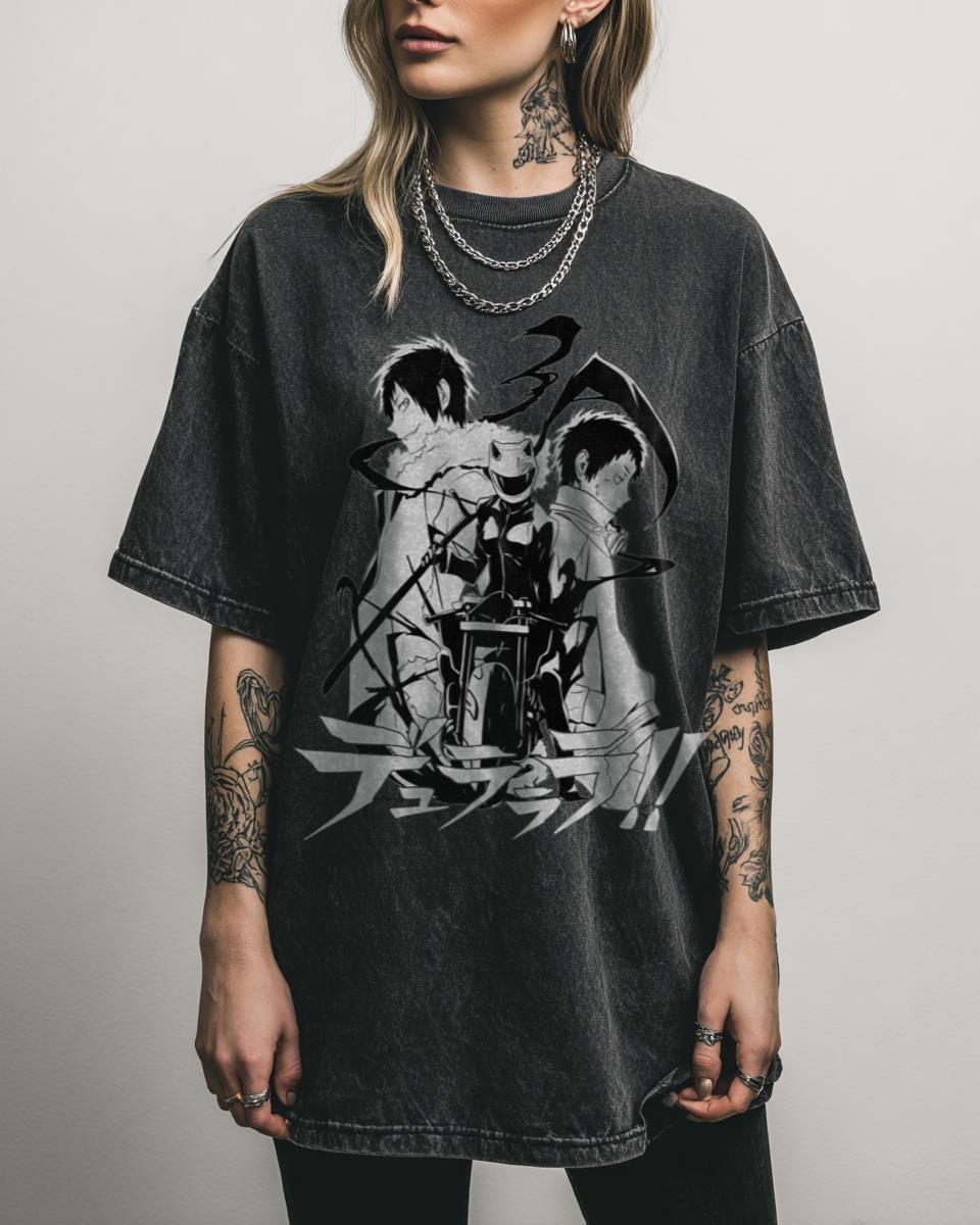 Why is This Celty Sturluson Durarara Urban Anime Tee a Fan Favorite? Ride through Ikebukuro with style in this Celty Sturluson Durarara Urban Anime Graphic Tee. Featuring the iconic Headless Rider, Celty Sturluson, on a black acidwash 100% cotton shirt, it’s a must-have for fans of the dynamic Durarara series. Dynamic Features for Durarara &…