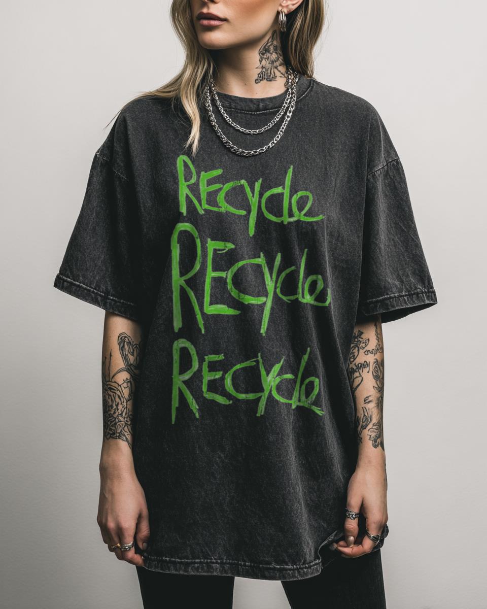 Are you an advocate for a greener planet and sustainable living? Show your commitment to the environment with this simple yet powerful ‘Recycle’ T-shirt. Featuring the iconic recycle symbol thoughtfully integrated with a green leaf, this minimalist design promotes Earth conservation and eco-friendly practices. It’s a clear statement for anyone dedicated to saving our planet…