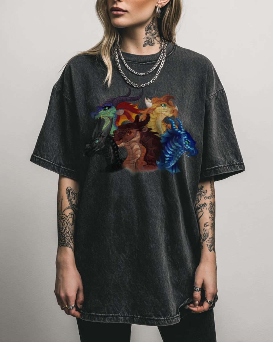 Are you ready to join the Dragonets of Destiny on their epic adventure? Celebrate your love for the ‘Wings of Fire’ series with this captivating graphic tee featuring the legendary Dragonets of Destiny. This design brings together Clay, Tsunami, Glory, Starflight, and Sunny, making it the perfect way to show your devotion to the beloved…