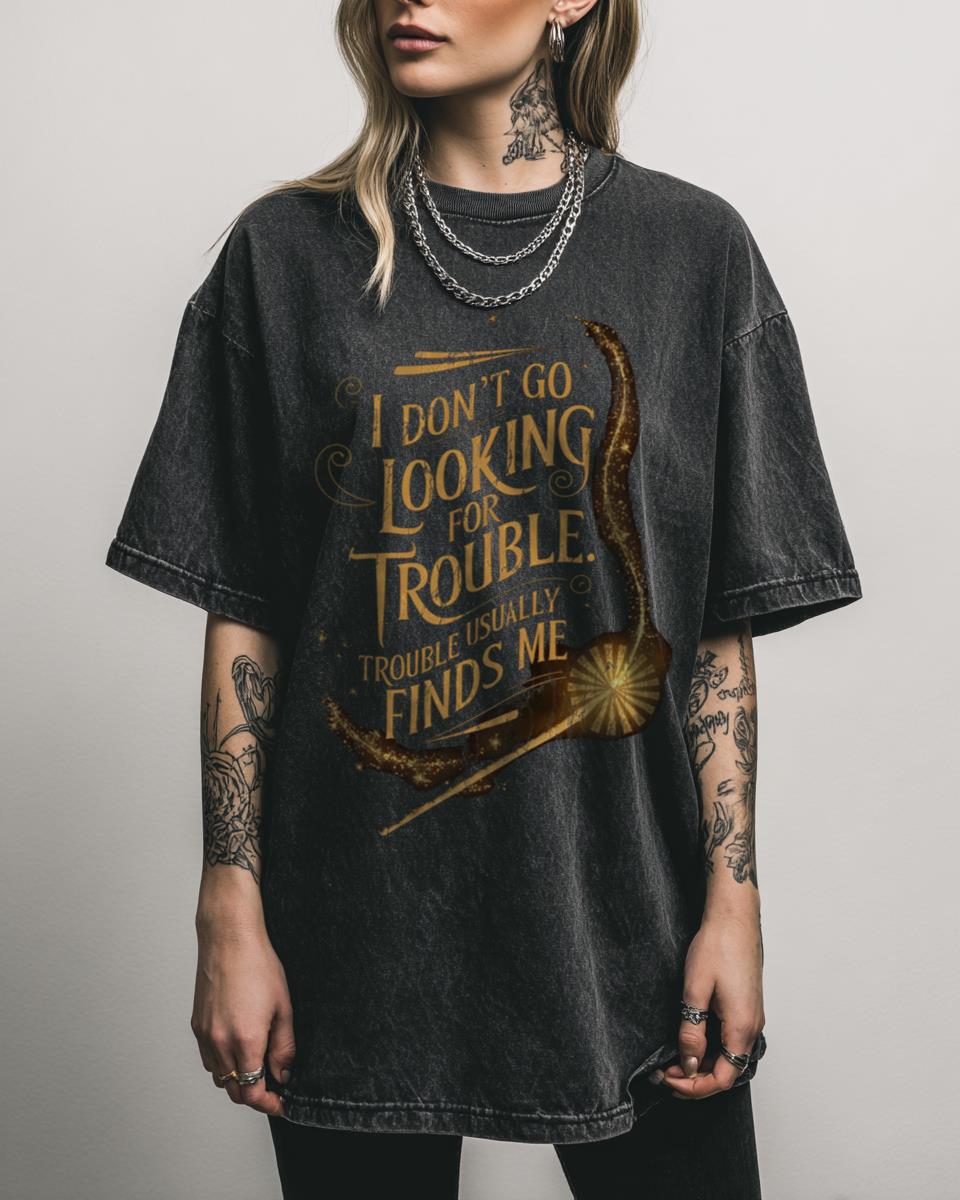 Do you find yourself in magical mishaps, just like your favorite wizarding characters? Embrace the whimsical chaos with this enchanting design featuring a magic wand and the relatable quote, ‘I Don’t Go Looking For Trouble – Trouble Usually Finds Me.’ It’s a perfect nod to the adventurous spirit of fantasy literature. Why You’ll Love This:…