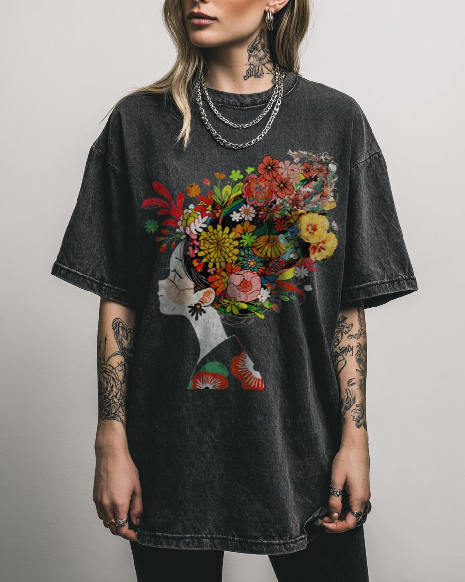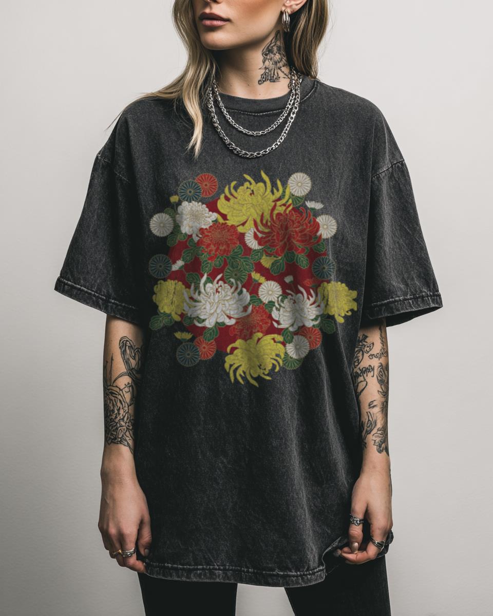 Why is the Japanese Chrysanthemum T-Shirt a Symbol of Culture? Adorn yourself with the beauty of the East in this Japanese Chrysanthemum T-shirt. Showcasing a stunning traditional floral pattern, this black acidwash tee is a homage to Japanese culture and the symbolic elegance of the chrysanthemum flower. Key Features of This Traditional Floral Culture Art…
