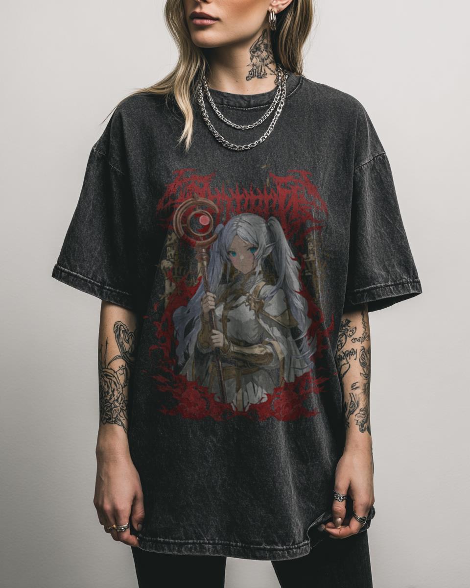 Ready to rock out with your favorite elf? Experience “Frieren: Beyond Journey’s End” with a heavy metal twist! This unique design combines the beloved anime characters like Frieren, Fern, Eisen, Heiter, and Himmel with a bold, rock-inspired aesthetic. Perfect for otaku who love fantasy adventure and have a passion for heavy metal culture. Show off…