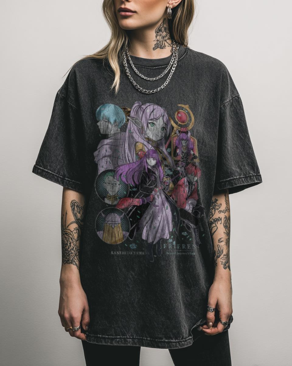 Embark on a journey with Frieren and her companions? Celebrate the enduring adventure of “Frieren: Beyond Journey’s End” with this T-shirt, featuring the beloved elf mage Frieren and her companions Fern, Himmel, Eisen, and Stark. This design is perfect for fans who cherish the deep bonds and poignant storytelling of the Sousou no Frieren anime…