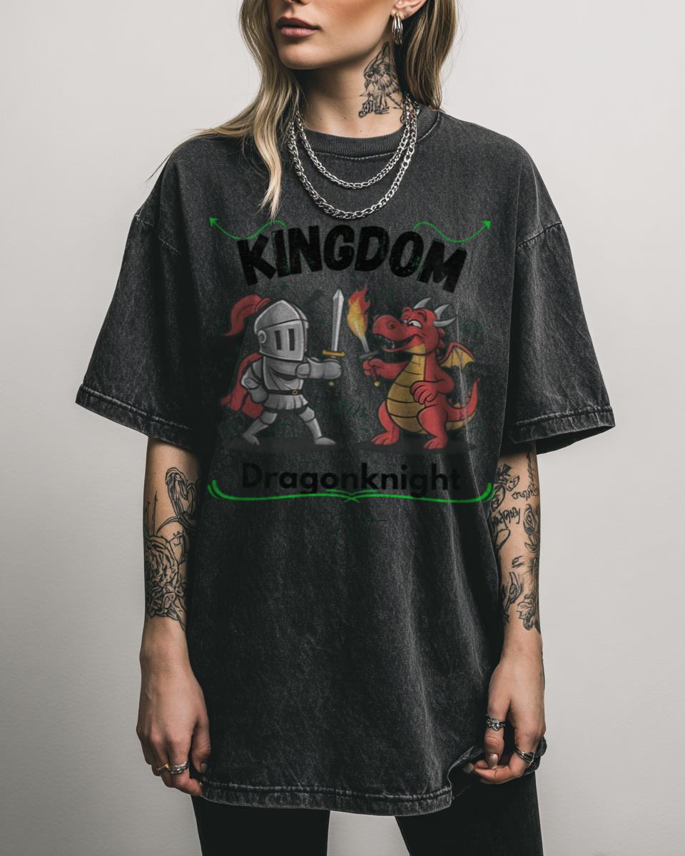 Who will win in this epic, yet hilarious, showdown? Witness the playful clash of titans with this ‘Dragon vs Knight’ T-shirt! This funny cartoon design brings a lighthearted, anime-style twist to the classic fantasy battle. Perfect for fans of dragons, knights, and anyone who enjoys a good laugh with their mythological adventures. A Knightly Battle…