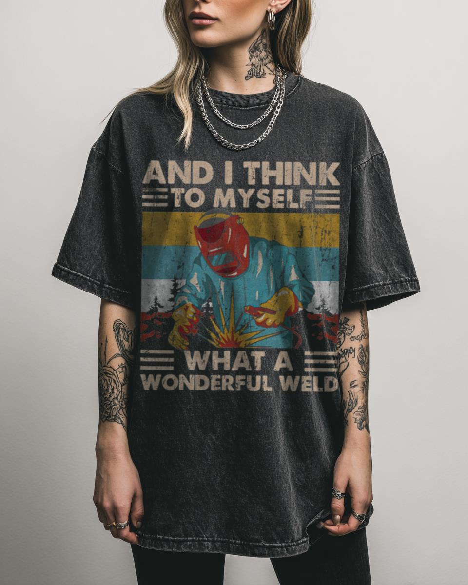 Looking for a Funny Blacksmithing T-Shirt? Show off your passion for metalwork with this ‘What A Wonderful Weld’ funny blacksmithing T-shirt. This playful design, celebrating the art of welding, is printed on a black acidwash 100% cotton shirt, perfect for any welder, blacksmith, or metal artist. Why This Welding Tee is a Great Find: Humorous…