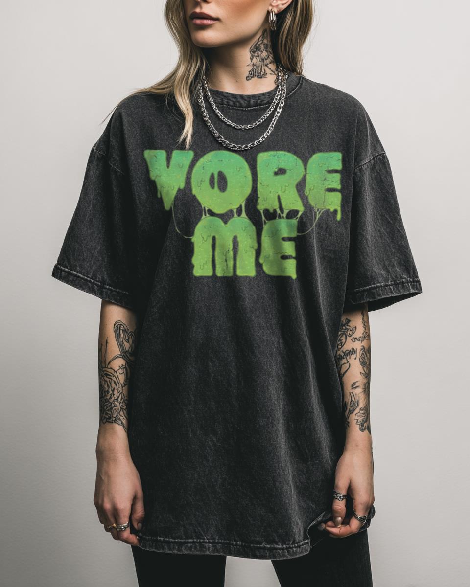 Looking for a bold and unique statement piece within the furry fandom? This “VORE ME – Green” design offers a distinct aesthetic for those familiar with and part of the furry community. It’s a niche, graphic tee that speaks directly to specific interests within the fandom, presented with a striking visual style. Why You’ll Love…