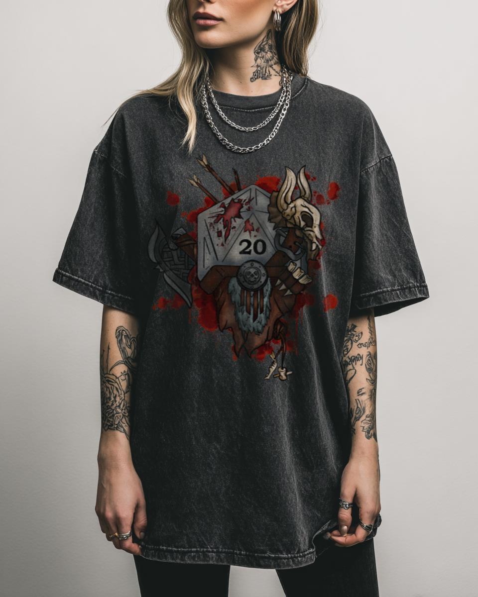 Are you a fierce Barbarian, ready to rage in your next Dungeons & Dragons campaign? Show your allegiance to the mighty Barbarian class with this iconic D&Dice; design. Perfect for Dungeons & Dragons players, this graphic represents the raw power and untamed spirit of the Barbarian. Whether you’re a fighter, rogue, or wizard, this tee…
