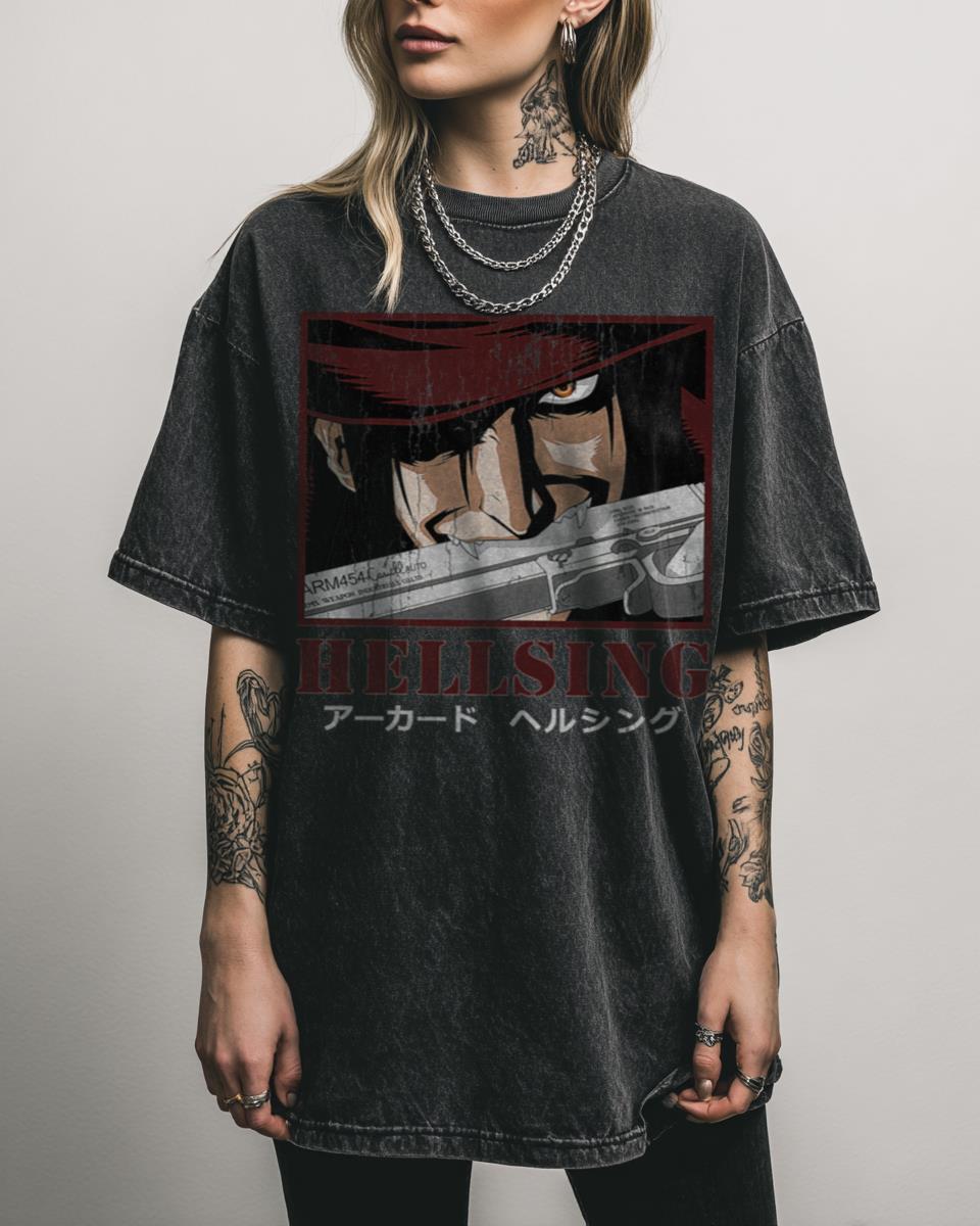 Ready to embrace the darkness with the ultimate vampire, Alucard? Unleash the power of the Hellsing Organization with this dark and iconic ‘HELLSING’ T-shirt, featuring the powerful Alucard Sigil. This design is a must-have for fans of the horror anime and manga series, celebrating the legendary vampire hunter. Why You’ll Love This Hellsing Sigil Tee…