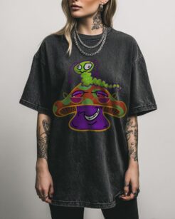 What Makes This Psychedelic Mushroom Tee a Trip? Take a trip to Wonderland with this psychedelic mushroom and caterpillar t-shirt. Inspired by groovy 60s art and classic fantasy tales, this design features a cartoon mushroom and a cool caterpillar, urging you to take things ‘nice, and slow.’ It’s a trippy, fun tee for fans of…