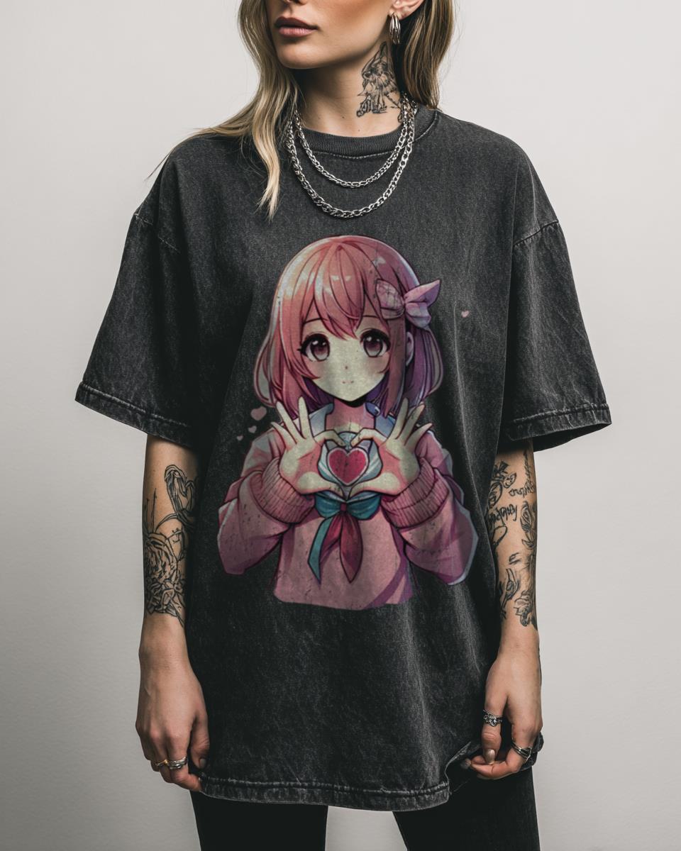 Why This Anime Heart Art Tee is a Sweet Statement? Express your love for Japanese animation with this charming Anime Heart Art tee, featuring a simple yet striking design. This cute graphic shirt is perfect for any anime enthusiast, blending aesthetic appeal with fan passion, presented on a unique black acidwash background. Features of Your…