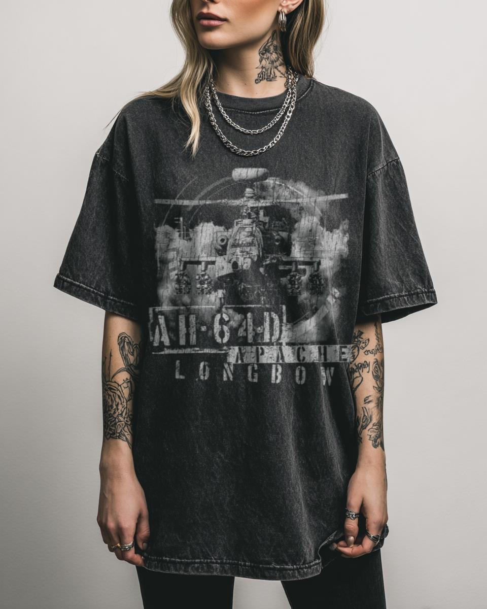 Discover the AH-64D Apache Longbow Attack Helicopter T-Shirt? Experience the power of military aviation with this AH-64D Apache Longbow Attack Helicopter T-Shirt. This unique black acidwash graphic tee captures the essence of the iconic gunship, making it an ideal choice for military personnel, veterans, and anyone passionate about modern combat aircraft. Why Choose This Military…