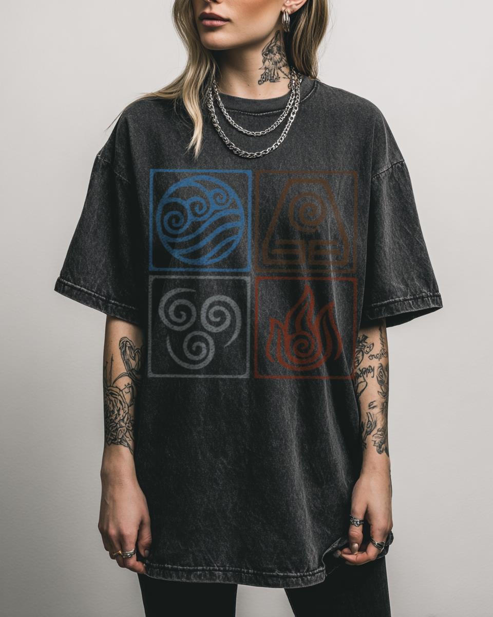 Represent the Elements with This Avatar The Last Airbender Tee! Show your mastery of the elements with this **Avatar The Last Airbender** inspired T-shirt, featuring a design that incorporates iconic ATLA themes and potentially Kanji symbols for the elements. This fan-created graphic pays homage to the rich world of bending and the distinct nations. Crafted…