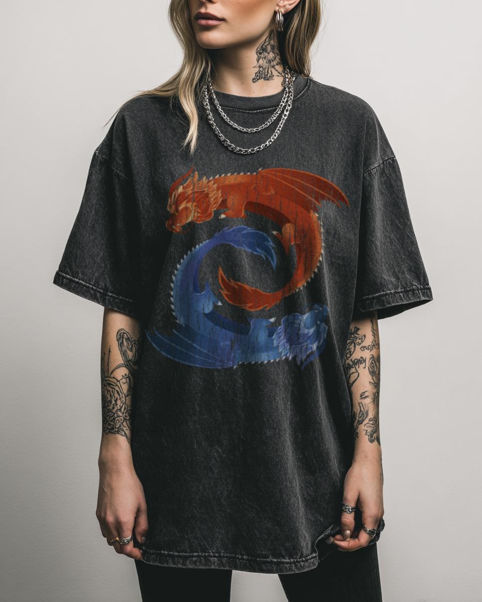 What Makes This Avatar Last Airbender Ran & Shaw Dragon T-Shirt Special? Honor the original Firebending Masters with this unique Avatar Last Airbender Ran & Shaw Dragon T-shirt. Featuring a fan-created graphic of the ancient Sun Warriors’ dragons, this black acidwash tee is a captivating piece of ATLA fan art, perfect for devotees of the…