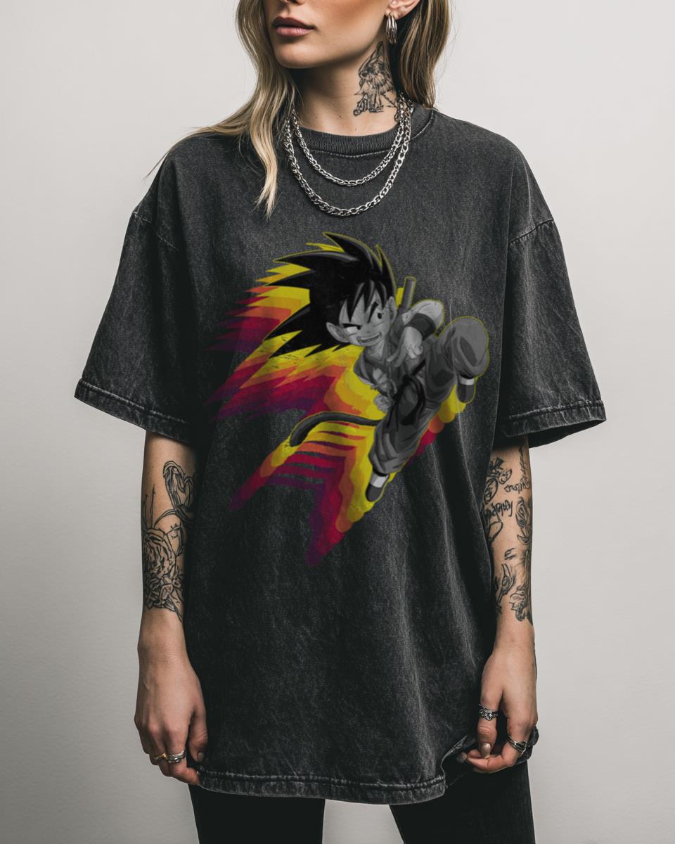 Why Choose This Kid Goku Fast Move Acidwash T-Shirt? Relive the early adventures of your favorite Saiyan with this Kid Goku Fast Move T-shirt, showcasing a dynamic graphic of young Goku in action. This fan-created design, inspired by the classic Dragon Ball Z series, comes on a stylish black acidwash tee, perfect for showing off…