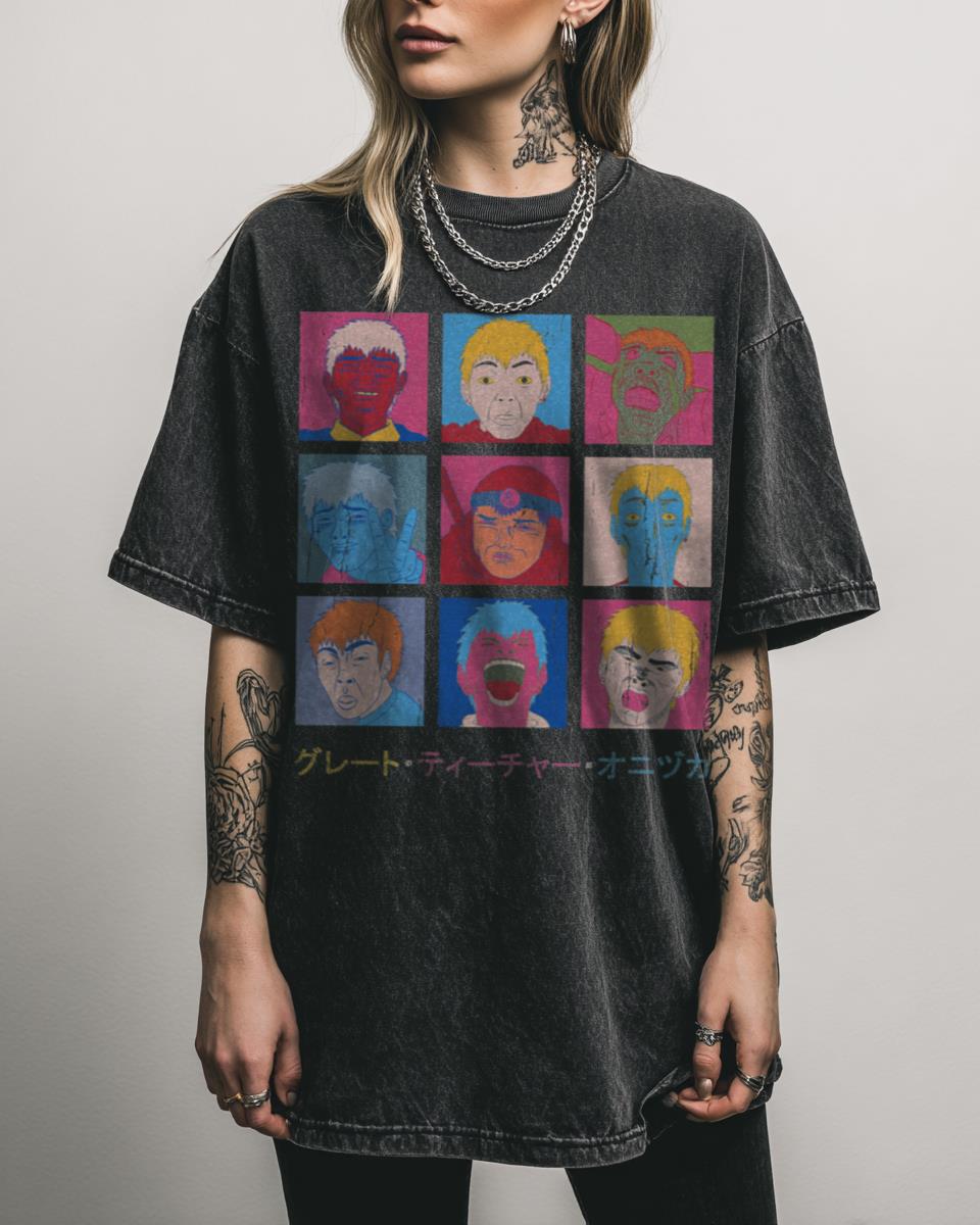 Are you ready to learn from the greatest (and wildest) teacher in anime history? Show your love for the legendary Eikichi Onizuka with this ‘GTO Onizuka faces’ graphic tee. This design captures the iconic expressions of the Great Teacher Onizuka, bringing the humor and charisma of the beloved anime and manga series to your wardrobe….